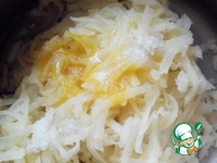 Вареный картофель чистим и натираем на крупной терке. Добавляем немного соли. Перемешиваем и формируем мокрыми руками котлетки. |