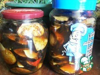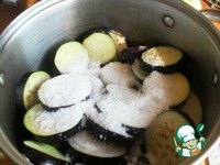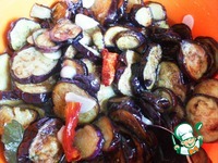 Каждую порцию обжаренных баклажан складываем в таз с маринадом. Самую последнюю выливаем вместе с маслом. |
