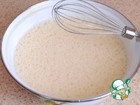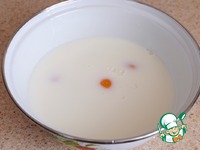 В миску добавить молоко, яйца, соль и сахар. Смесь хорошо взбить. |