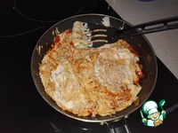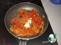 Как только смесь на сковороде станет однородной добавим раздавленный через пресс чеснок. Все перемешаем |