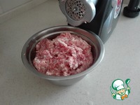 Режем мясо на куски и пропускаем его через мясорубку |