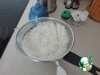 Промываем рис и варим в подсоленной воде его до полу-готовности. Сливаем рис. |
