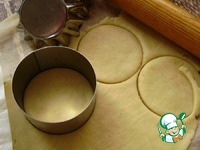 Выложить тесто между двух листов бумаги для выпечки и раскатать в слой толщиной около 0,5 см. Вырезать кружочки выемкой и …а дальше все зависит от размера ваших формочек для корзиночек. |