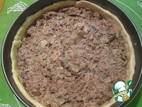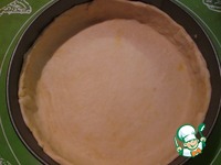 Форму для пирога ( не меньше 25 см. в диаметре ) смазать маслом. Тесто разделить на две неравные части: 2/3 и 1/3. Раскатать большую часть в тонкий круг так, чтобы можно было сформировать бортики. |