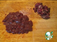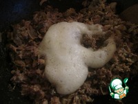 Добавить печень и муку, готовить, помешивая, 30 секунд. Постепенно, все время помешивая, чтобы не образовались комки, влить стакан бульона. Готовить 5 минут. |