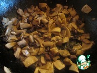 На сковороде разогреть 3 ст. л. растительного масла, выложить сердечко и грибы, готовить 3 минуты. |