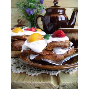 Украсить ягодами и фруктами и обязательно листочками мяты –очень украшает не только вид, но и вкус. Подавать торт сразу, чтобы хрустящая корочка не отмякла. |