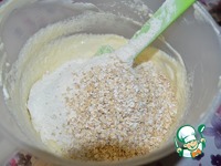 Добавить сметану, молоко и смесь муки и хлопьев. |
