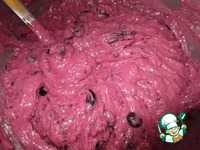 Муку+разрыхлитель просеять и добавить в ягодную массу. Хорошенько размешать ложкой, не миксером. |