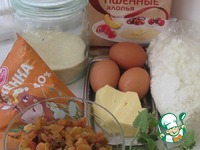 Добавляем ряженку, манку, хлопья, разрыхлитель теста. Все перемешиваем и даем постоять минут 20, чтобы набухли хлопья. Ряженку лучше брать комнатной температуры. |