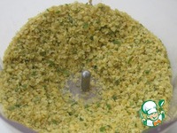Перемелем в блендере пряные травы с хлопьями. Так значительно проще. Не теряется сок трав. |