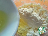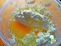 Белок от предыдущего рецепта http://www.povarenok .ru/recipes/show/130 080/ влить вместе со сметаной в творог. |