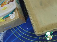 Тесто разморозить. Рабочую поверхность припылить мукой. Раскатать тонко тесто и выложить в подготовленную форму. Наколоть вилкой. Лишнее тесто срезать. |