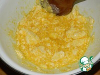 Для приготовления теста соединяем мягкое сливочное масло с яйцом и сахаром. |