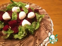 Сверху выложить моцареллу. Посолить. Поперчить. Смешать уксус с оливковым маслом. Салат полить полученной заправкой. |