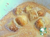 Налить сверху заливку. Немного подождать, чтобы пропитались все ломтики. Пирог не поднимется, так что можно наливать до краёв. |