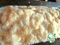 Теперь собираем пирог. Форму обильно смазать мягким сливочным масло, оставив половину для верха. Налить на дно немного заливки, примерно в 1 см высоты. |