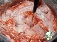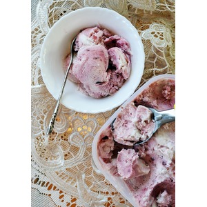 Переложить в холодную посуду, добавить черносливовый соус и небрежно перемешать ложкой. Накрыть и убрать в морозильник для застывания. |