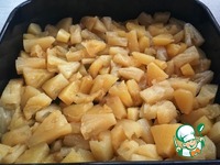 Выкладываем кусочки ананаса на дно квадратной формы, стараясь, чтобы глазурь осталась в емкости. |
