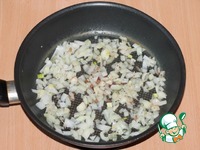 6. Пока запекается курица, приготовим соус. Нарезаем лук, имбирь трем на терке, чеснок выдавливаем. Обжариваем лук с чесноком и имбирём до золотистого цвета. |