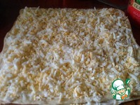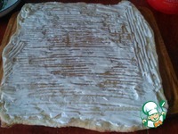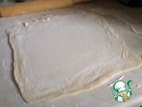 Раскатываем скалкой тесто (чем тоньше, тем лучше), следим, чтобы не было дырок и просветов. Я раскатываю под ширину своего противня |