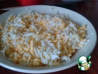Четвертый пласт смазываем майонезом и выкладываем сыр |
