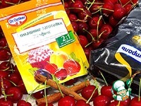 Набор продуктов для вишневого конфитюра - вишня, коричневый сахар, корица и желфикс 2:1 |
