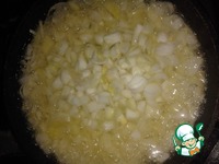 Полкилограмма лука пережариваем в 0.5 литра растительного масла до золотистого цвета. |