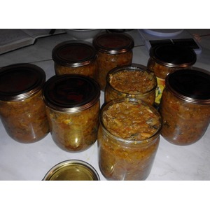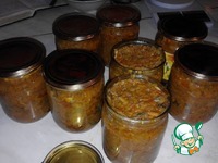 Раскладываем в стерильные баночки и закатываем. Переворачиваем крышкой вниз и укутываем до остывания. Из порции у меня вышло 8 поллитровых баночек. |