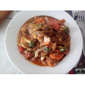 1. Очистить баклажаны от кожуры. Нарезать кубиками и отправить тушится на медленном огне