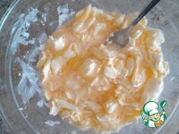 Для начала берем маргарин комнатной температуры, вбиваем яйца, и разминаем маргарин вилкой, перемешиваем. |