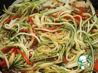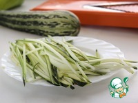 Кабачок или цукини нарежьте тонкой соломкой с помощью специальной терки или ножом. |