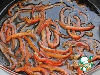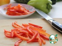 Затем добавьте сладкий перец, обжарьте до мягкости перца. |