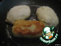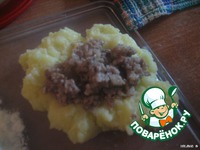 Делаем лепёшечки из пюре + (немного сюрприза) - нашей бывшей котлетки. |