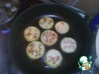 Затем чистим баклажаны, режем кружками и обжариваем на масле до готовности. |