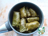 Берём сотейник или кастрюлю и укладываем плотно долму. |