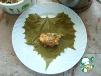 Описание: Долма, сделанная с листьями местного винограда. Фарш для долмы сделала из куриной грудки, с добавлением риса, моркови, лука, чеснока и зелени.