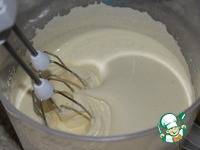 Продолжая взбивать, добавляем мед и сливочное масло. |