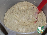 Далее просеиваем в тесто муку с разрыхлителем, перемешиваем и добавляем орехи. |