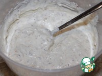 Для приготовления крема взбиваем охлажденную сметану, постепенно добавляя сахар и ванильный сахар. Добавьте сливочное масло, снова взбейте и подмешайте измельченные ножом орехи. |