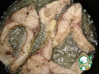 В сковородку наливаем масла, так, чтобы на половину покрывало кусочки рыбы и доводим его до кипения. В раскаленное масло выкладываем кусочки рыбы и обжариваем с двух сторон до готовности. |