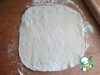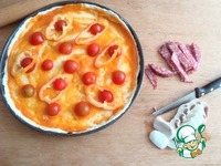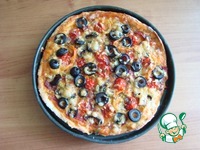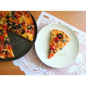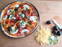 Форму я не подмазываю, она у меня антипригарная. Укладываю тесто по форме, у меня маленькие "бортики" получились. Промазываем соусом томатным. Соус томатный "Суго"- домашний и базовый итальянский соус для пиццы, спагетти и т. д. Его я делала сама. Вот ссылка: http://www.povarenok .ru/recipes/show/130 601/