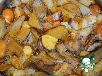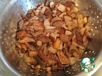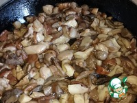 Теперь берем наши грибы и обжариваем их на сковороде. Повторюсь, если у вас вешка или шампиньоны, то их отваривать не нужно, вы их моете, режете и сразу обжариваете. |