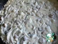Теперь в грибы добавляем сметану, я к сметане добавляю еще немного майонеза, но если вы не едите майонез, то можно и без него. |