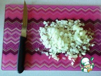Чистим и моем лук, нарезаем его мелкими кубиками, кидаем в сковородку с разогретым маслом, обжариваем минут 5. |