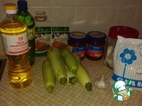Готовим продукты, кабачок режем кубиком, часнок перекручиваем на мясорубке, складываем все ингридиетны в кастрюлю. |