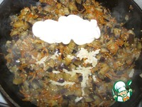 Далее добавляем майонез и пропущенный через пресс чеснок, перемешиваем. накрываем крышкой и тушим еще 5 минут. Разок нужно помешать, иначе пригорит |
