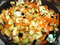 Морковь трем на средней терке, лук и баклажаны режем кубиками. |