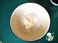 Затем добавляем 200 г. муки и 1 ч. л. разрыхлителя, замешиваем тесто Тесто должно получится не жидкое, но и не слишком густое ( консистенция напоминает мягкое масло). |
