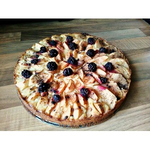 Смешиваем 1 ст. л. корицы и 1 ч. л. сахара, посыпаем наш пирог ( я так же выложила на пирог несколько ягод ежевики) |